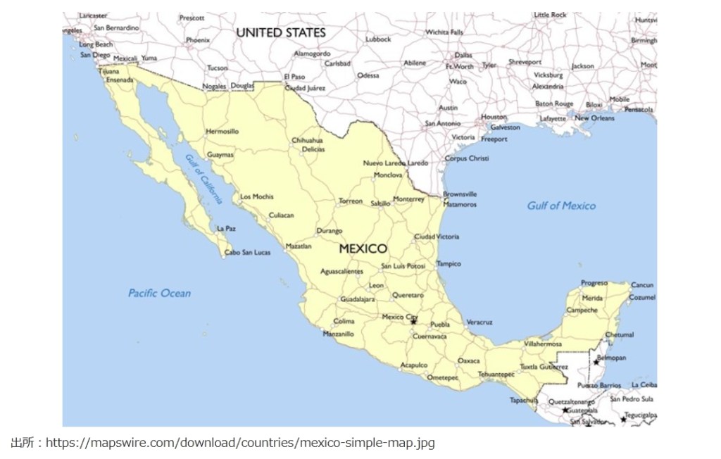 出所:https://mapswire.com/download/countries/mexico-simple-map.jpg