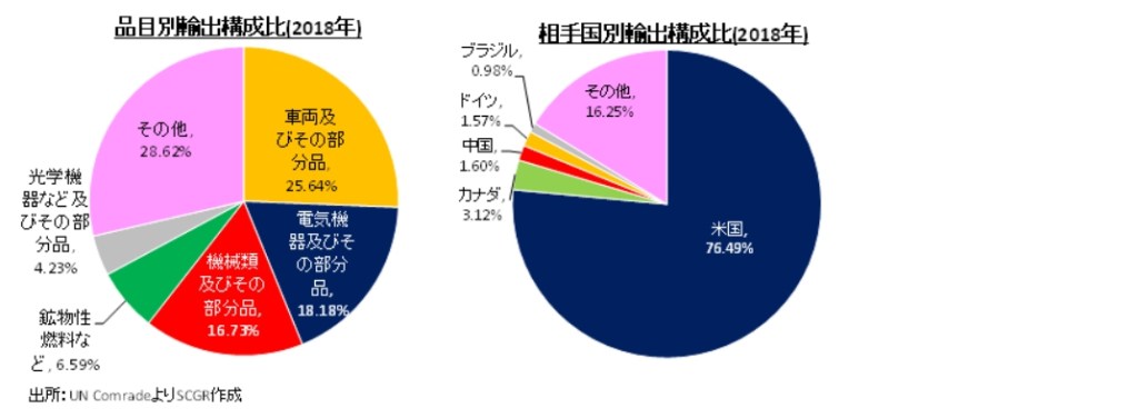 品目別輸出構成比(2018年) 出所:UN ComradeよりSCGR作成相手国別輸出構成比(2018年) 出所:UN ComradeよりSCGR作成