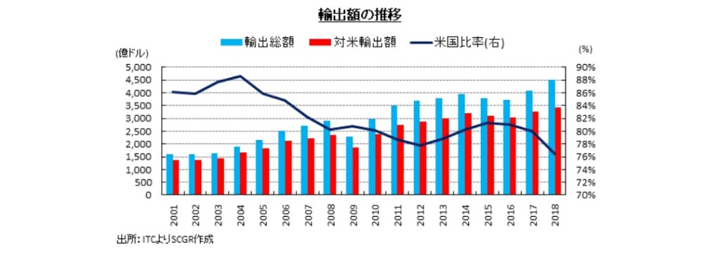 まず、米国との濃密な経済関係が挙げられる。具体的には輸出の8割弱、輸入の5割弱、投資の4割弱を米国が占め、貿易や投資で大きく米国に依存している。また、海外労働者による送金の送金元の約95%が米国である。