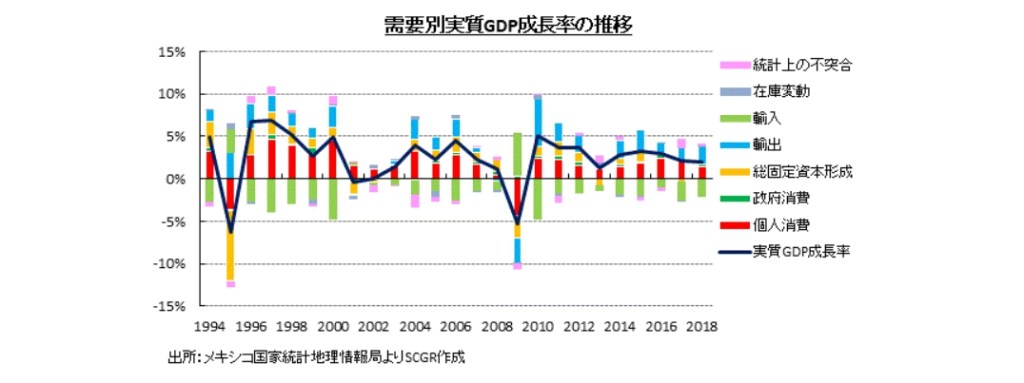需要別実質GDP成長率の推移 出所:メキシコ国家統計地理情報局よりSCGR作成