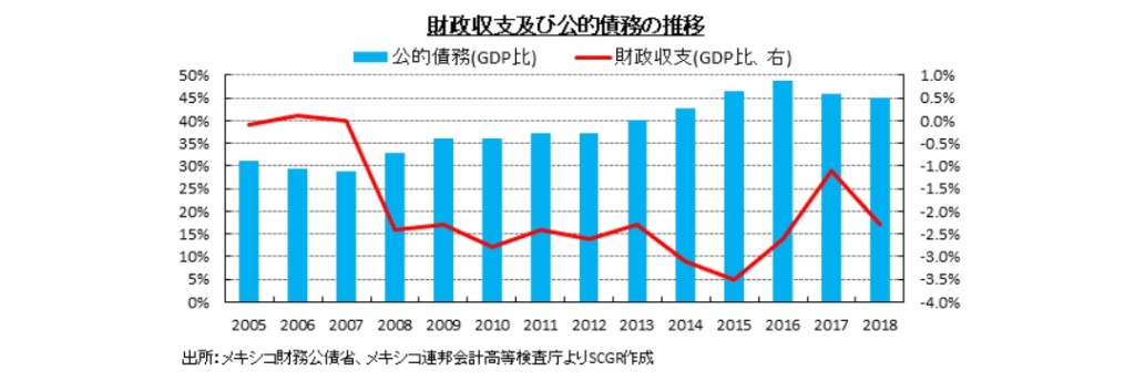 財政収支及び公的債務の推移 出所:メキシコ財務公債省、メキシコ連邦会計高等検査庁よりSCGR作成