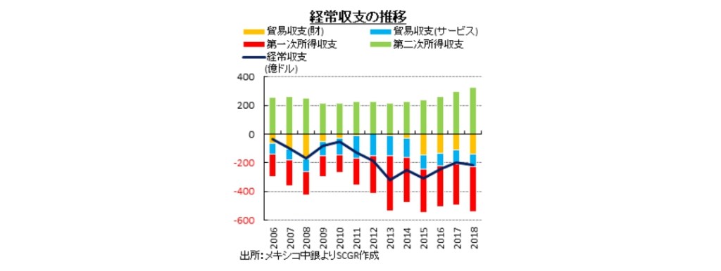 経常収支の推移 出所:メキシコ中銀よりSCGR作成