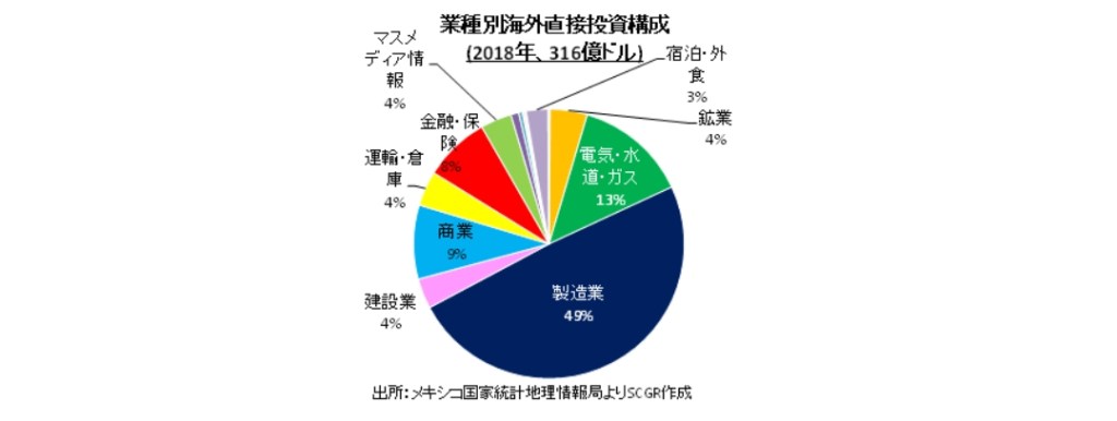 業種別海外直接投資構成 出所:メキシコ国家統計地理情報局よりSCGR作成