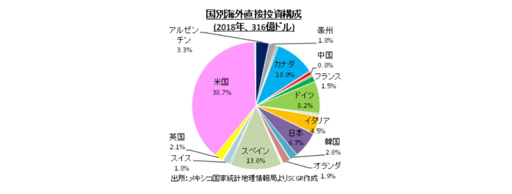 国別海外直接投資構成 出所:メキシコ国家統計地理情報局よりSCGR作成
