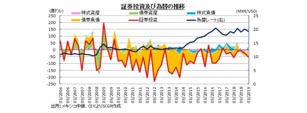 証券投資及び為替の推移 出所:メキシコ中銀、CEICよりSCGR作成