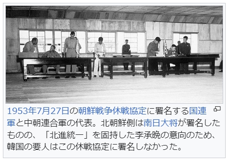 1953年7月27日の朝鮮戦争休戦によって朝鮮は軍事境界線(38度線)による分断と対立が固定されることとなった[23]。