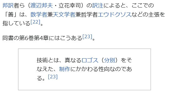 技術とは、真なるロゴス(分別)をそなえた、制作にかかわる性向なのである。[23]
