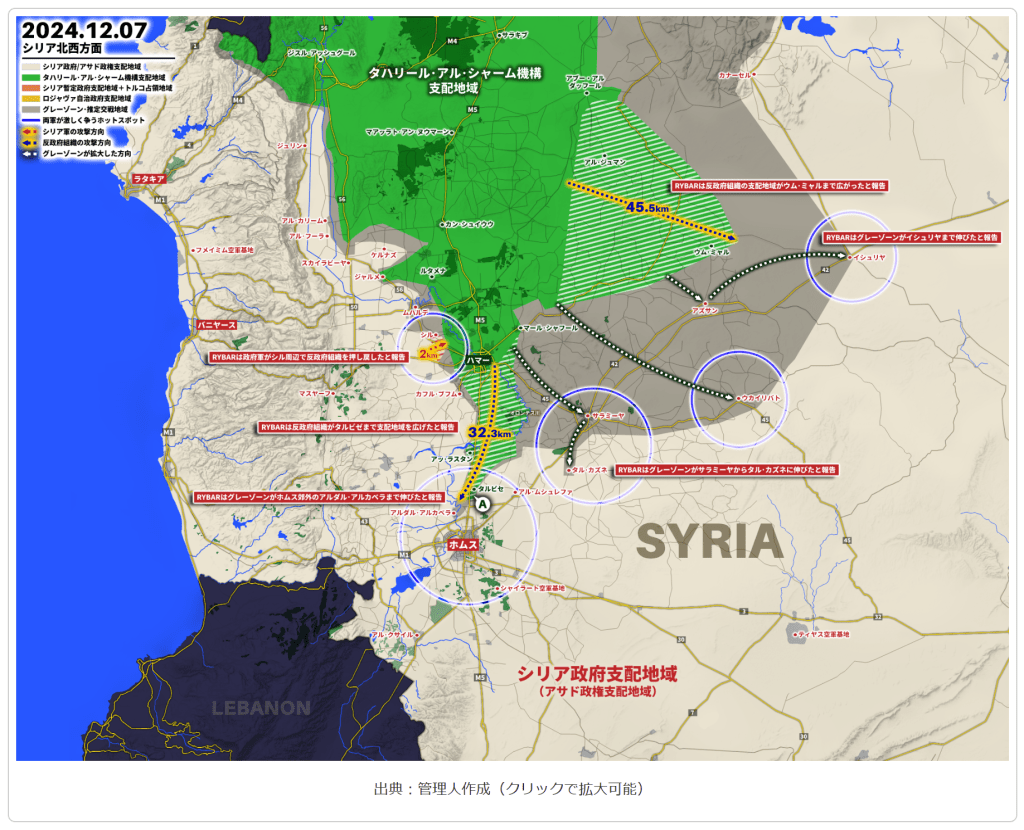 この記事は最新の出来事(2024年シリア反体制派攻勢)に影響を受ける可能性があります。 情報は出来事の進行によって急速に変更される可能性があります。(2024年12月)