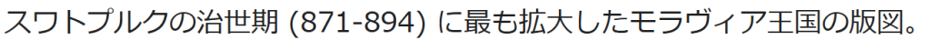 スワトプルクの治世期 (871-894) に最も拡大したモラヴィア王国の版図。
