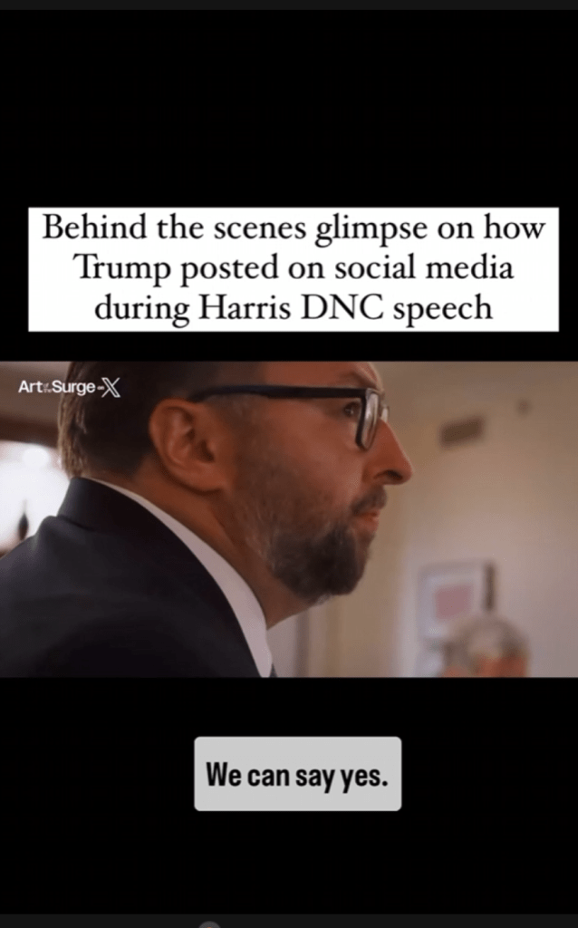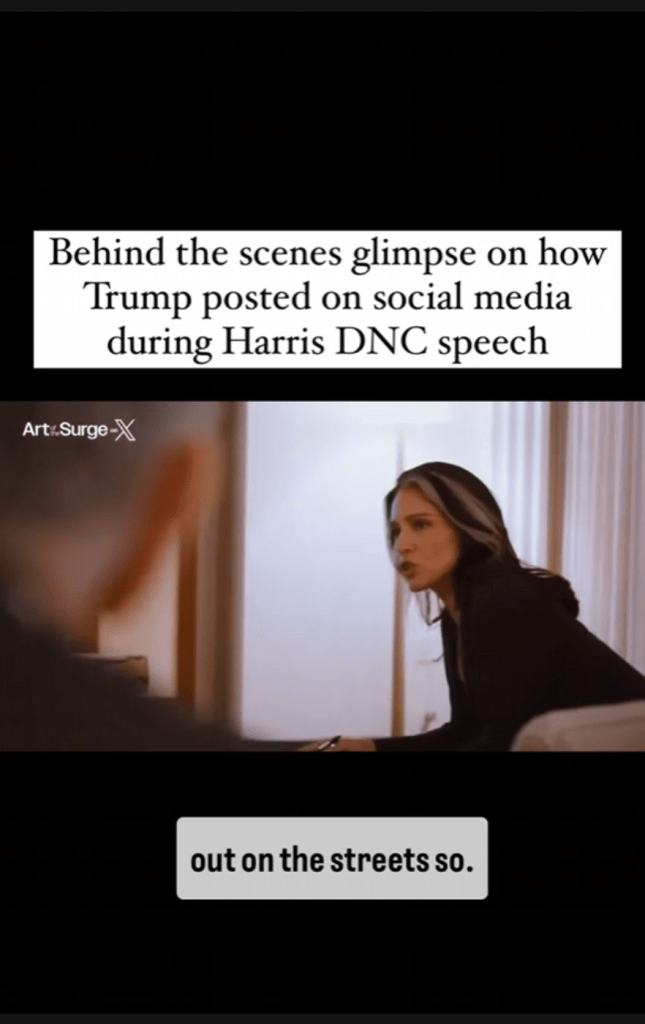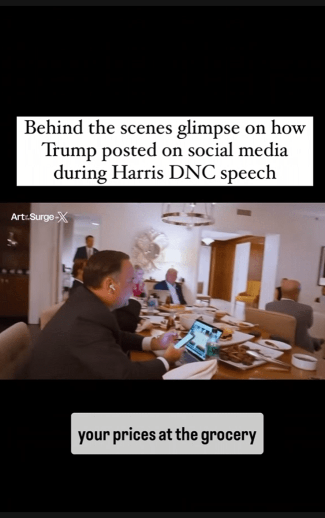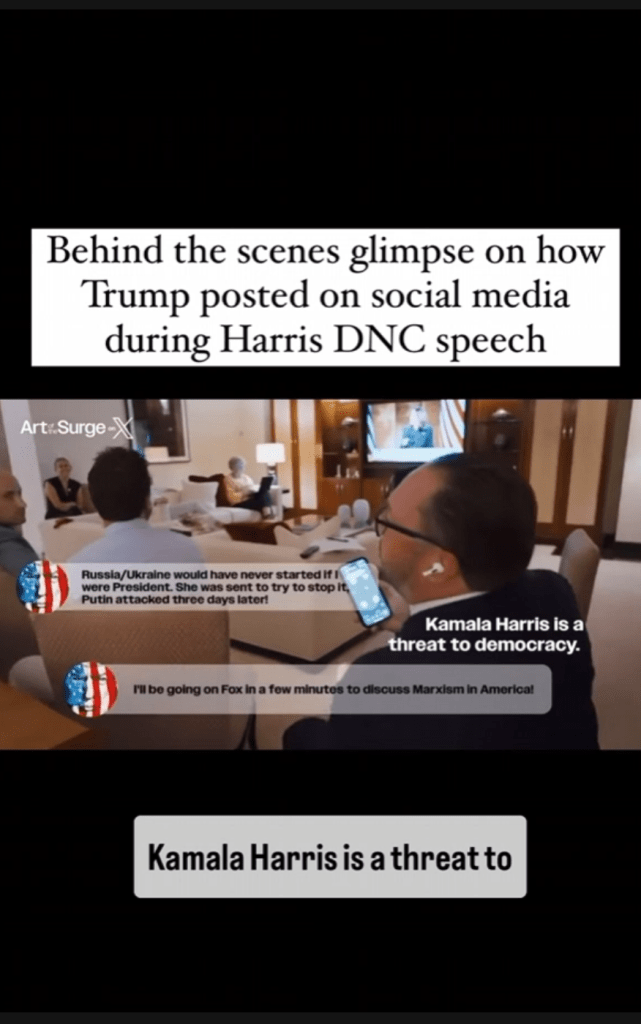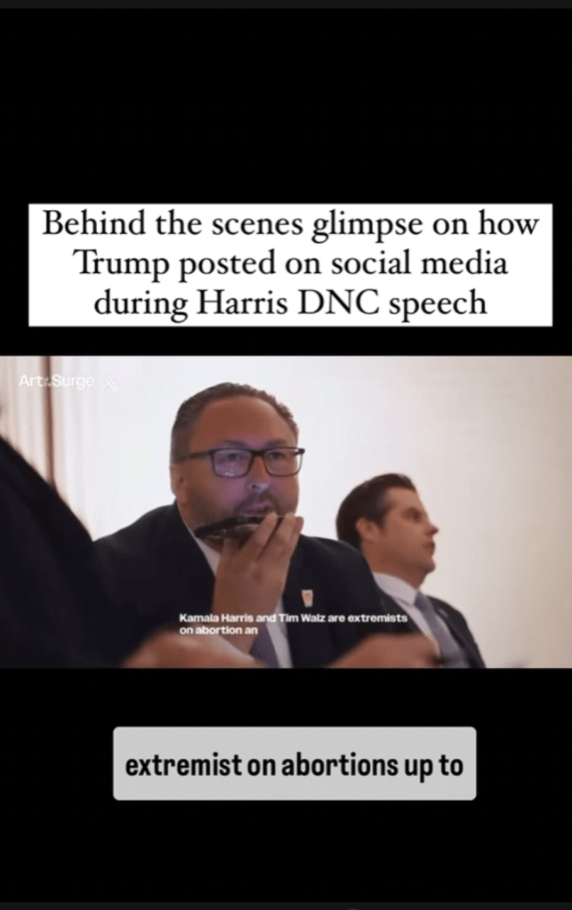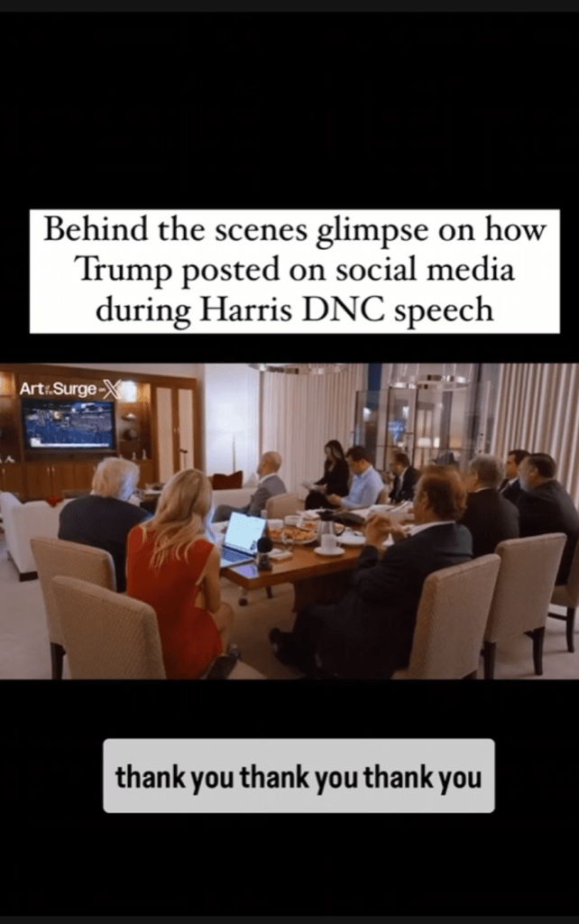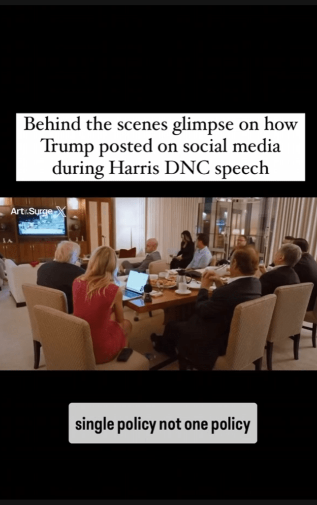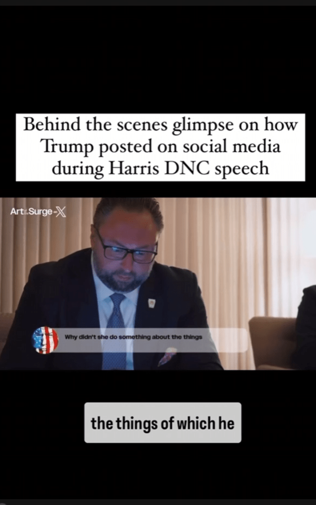 『その一端が垣間見えるのが、大統領選の対抗馬であったカマラ・ハリス候補が8月22日の民主党全国大会で受諾演説をした際に、トランプ候補以下陣営のトップが集まって分析を行い、トランプ氏が次々とトゥルースソーシャルでSNS発信をする場面の動画だ。この動画は公開されているのでぜひご覧いただきたい。