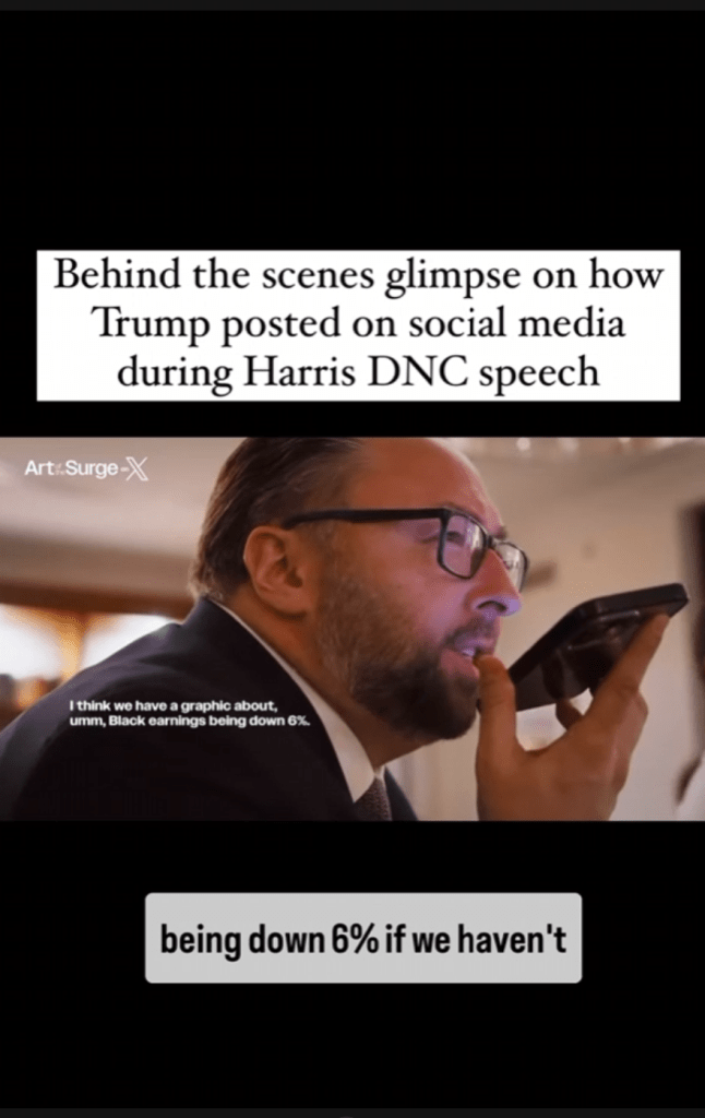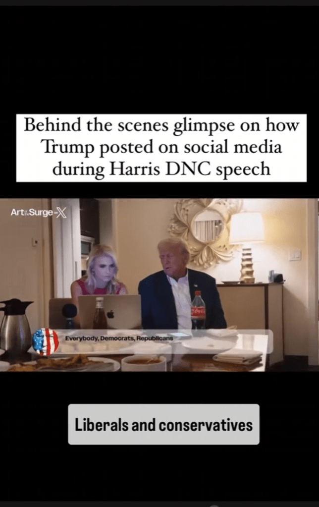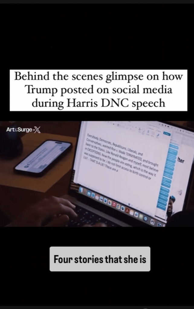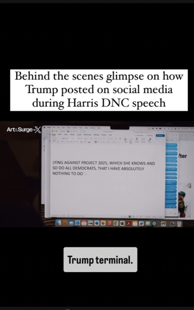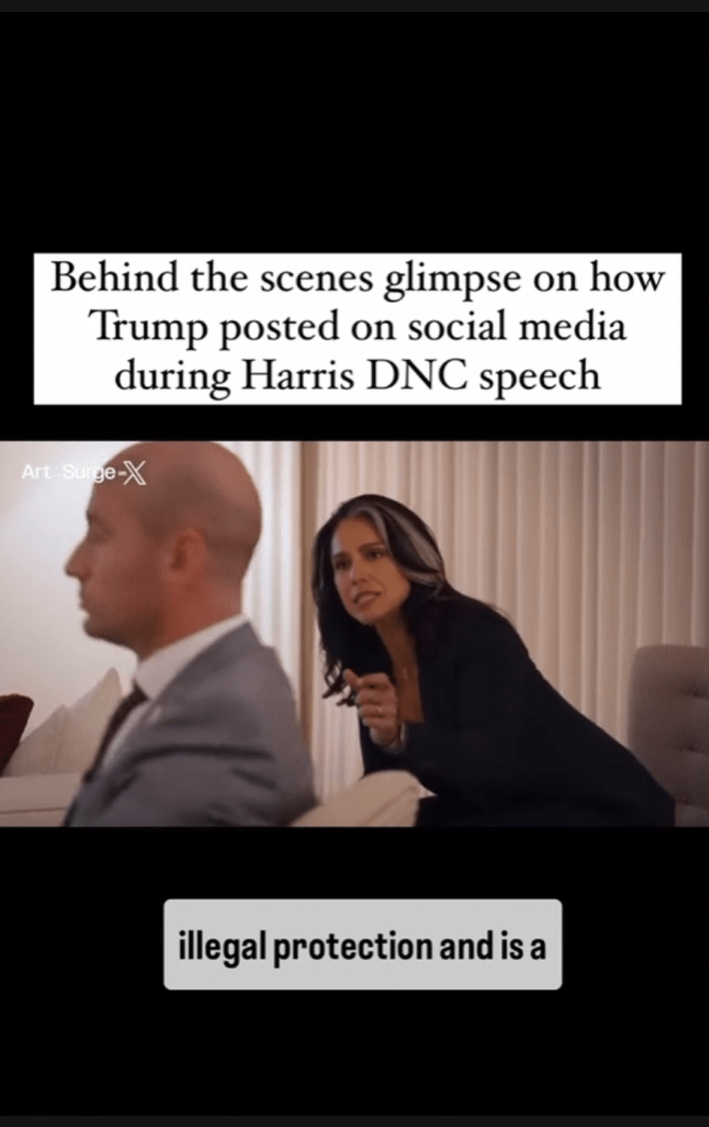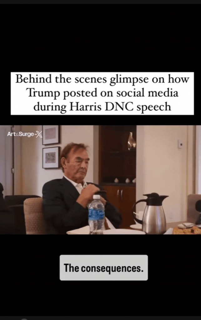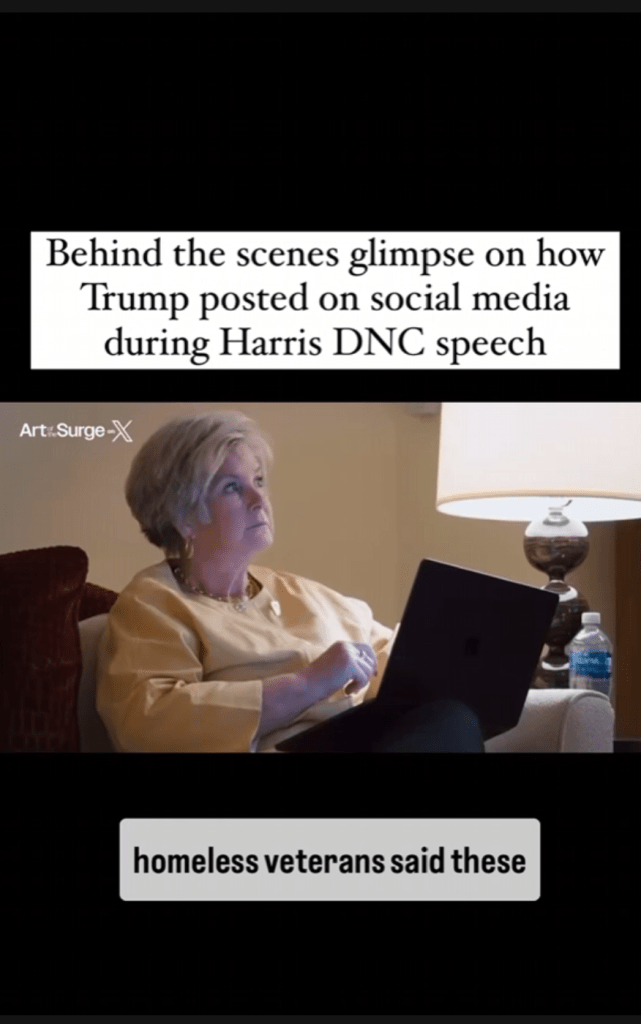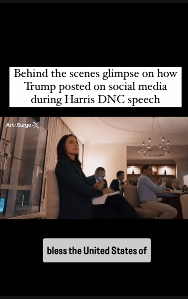 『その一端が垣間見えるのが、大統領選の対抗馬であったカマラ・ハリス候補が8月22日の民主党全国大会で受諾演説をした際に、トランプ候補以下陣営のトップが集まって分析を行い、トランプ氏が次々とトゥルースソーシャルでSNS発信をする場面の動画だ。この動画は公開されているのでぜひご覧いただきたい。