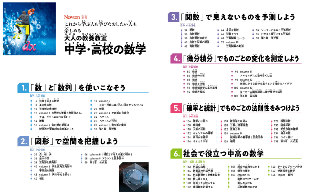 本書は,中学・高校で学ぶ数学の単元をやさしく解説するだけでなく,それらの知識からさらに一歩踏みだし,ビジネスや日常生活に数学が活用されるようすや,奥深い魅力も紹介しています。