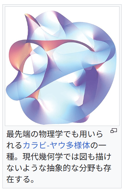 最先端の物理学でも用いられるカラビ-ヤウ多様体の一種。現代幾何学では図も描けないような抽象的な分野も存在する。