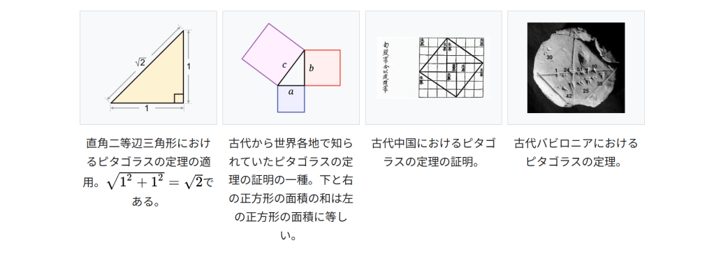 古代から世界各地で知られていたピタゴラスの定理の証明の一種。下と右の正方形の面積の和は左の正方形の面積に等しい。