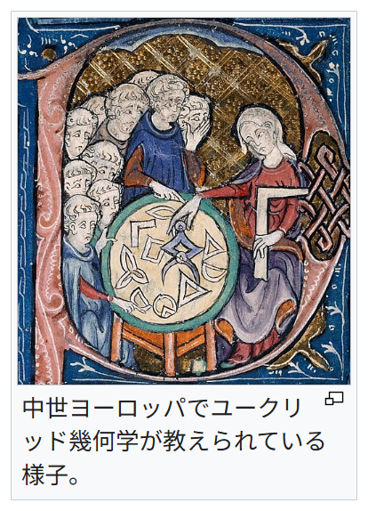 中世ヨーロッパでユークリッド幾何学が教えられている様子。