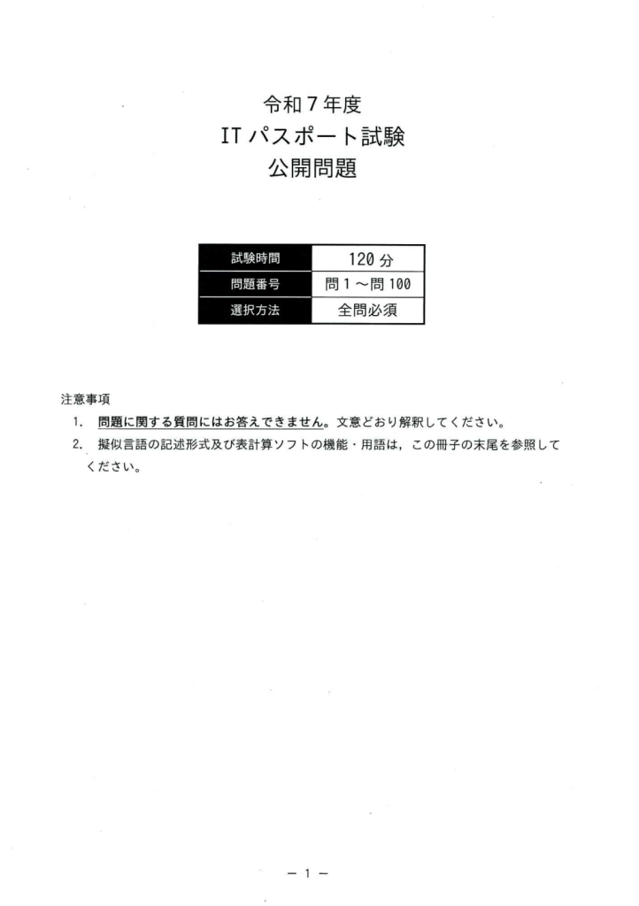 令和7年度 ITパスポート試験 公開問題 問題冊子