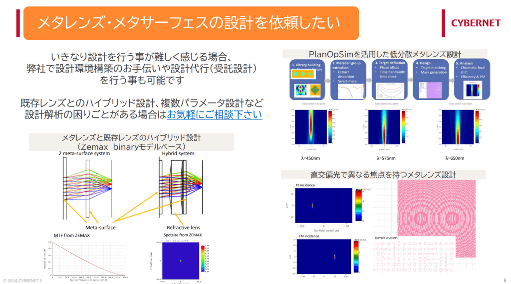 ここでは、当社のメタレンズ設計支援に関わる概要資料や、過去に開催したセミナー動画、設計事例などをご覧いただけます。
