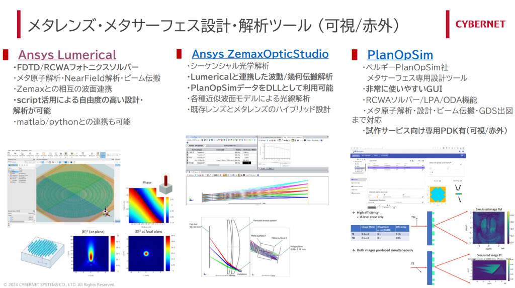 Ansys Lumericalなどと連携することで、メタレンズの設計・解析が効率的に行えます。