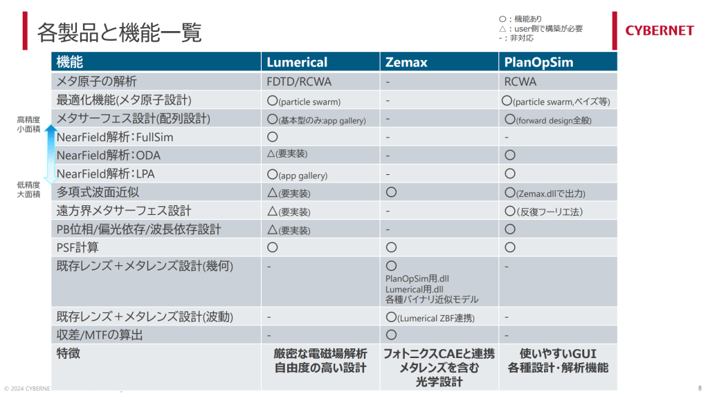 計算専用のハードウェアが不要で、特殊な要件のメタレンズ設計にも対応しています。
