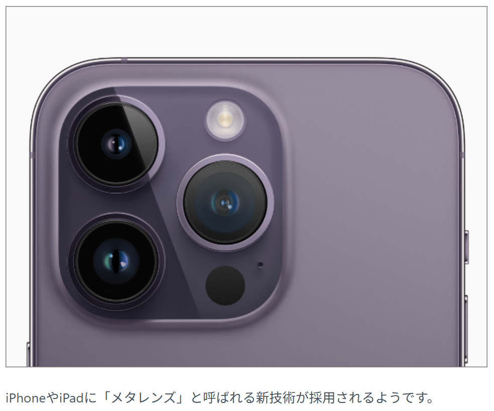 PhoneやiPadに「メタレンズ」と呼ばれる新技術が採用されるようです。