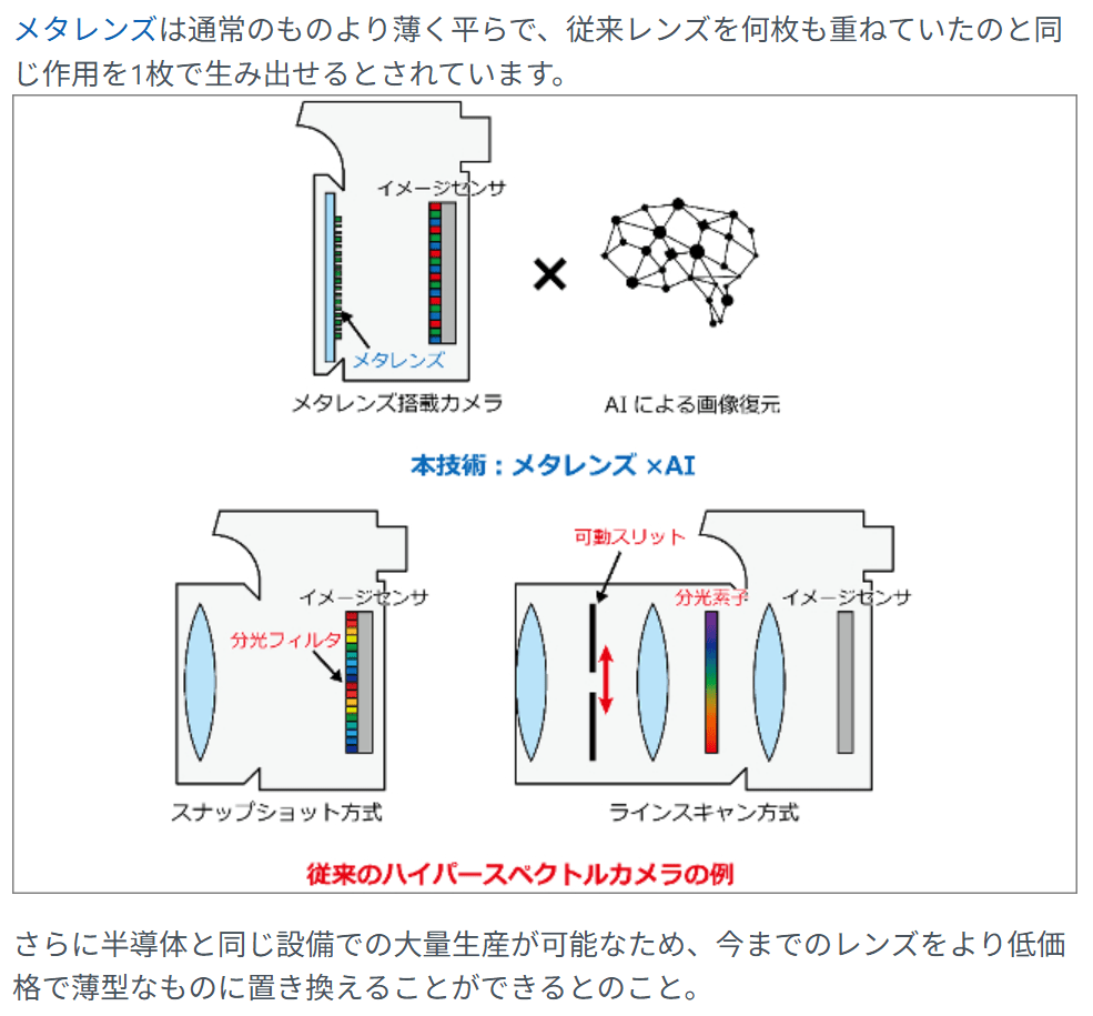 さらに半導体と同じ設備での大量生産が可能なため、今までのレンズをより低価格で薄型なものに置き換えることができるとのこと。