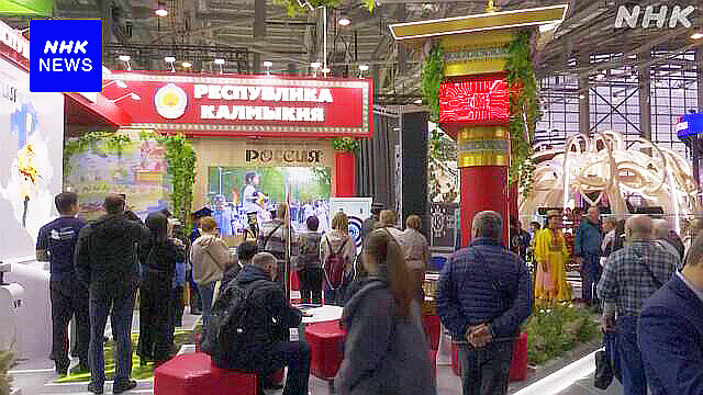 また会場では、2014年にロシアが一方的に併合したウクライナ南部クリミアのほか、去年、ロシアが併合を宣言したウクライナ東部のドネツク州とルハンシク州、南部のザポリージャ州とヘルソン州を紹介するブースも設けられ、軍事侵攻の成果を強調した。