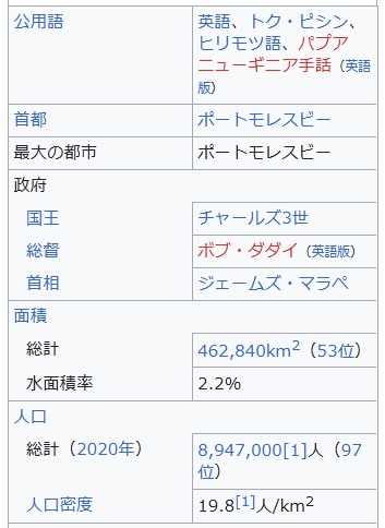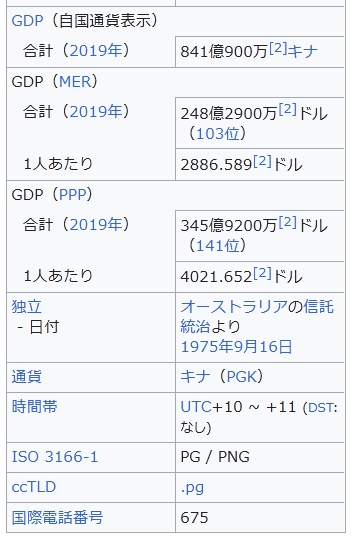^ a b c d e f “パプアニューギニア基礎データ”. Ministry of Foreign Affairs of Japan. 2022年3月1日閲覧。