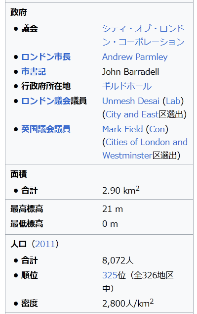 ^ “Key facts”. Cityoflondon.gov.uk. 2012年6月4日時点のオリジナルよりアーカイブ。2011年10月30日閲覧。