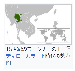 15世紀のラーンナーの王ティローカラート時代の勢力図