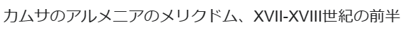 XV世紀には、ハチェンはトルコのカラコユンル州とアクコユンル州の一部であり、XVI世紀の初めにサファヴィー朝の一部となりました。XVI-XVII世紀に、ハチェン公国は1つの小さな所有物 – メリクドムに分割されました。XVIII世紀半ばまで存在していたカムサのメリクドムは、現代までアルメニアの国民国家構造の最後の中心地となりました[<>]。