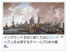 イングランド王位に就くためにロッテルダムを出港するチャールズ2世の艦隊。