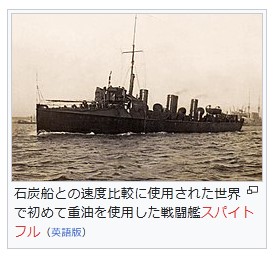 石炭船との速度比較に使用された世界で初めて重油を使用した戦闘艦スパイトフル(英語版)