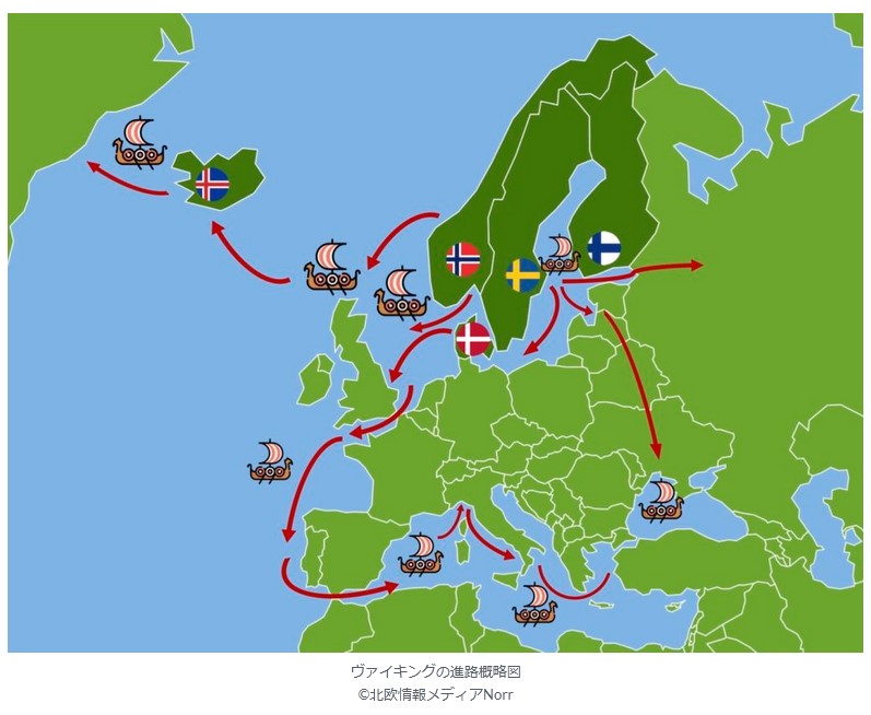 中世までで大きな動きが出たのは、8世紀。北の海賊「ヴァイキング時代(Viking)」です。ノルウェーやデンマークのヴァイキングはイギリスやフランス、イタリアなどの西欧・南欧へ侵略を進めたのですが、スウェーデンはフィンランドへ進出しました。オーランド(Aland)を通って、フィンランド、ロシアへと進んでいきました。結果、ノヴゴロドを統治し、862年にキエフに辿り着きました。