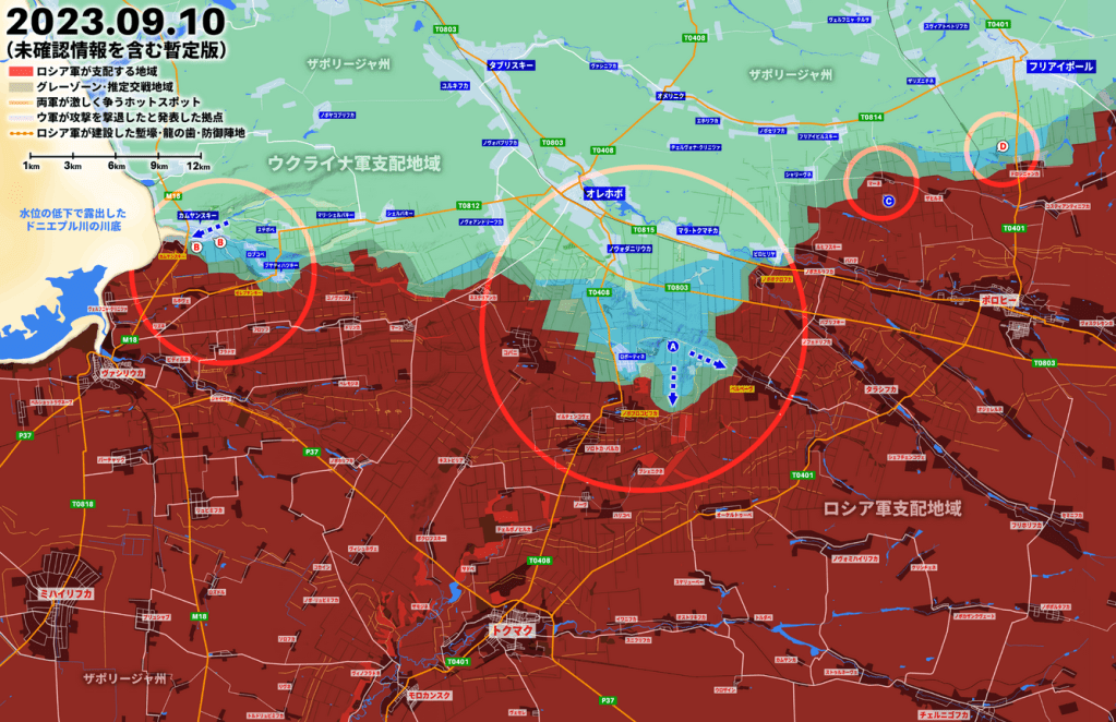 関連記事:ザポリージャ州の戦い、ウクライナ軍がベルベーヴの防衛ラインを一部占拠 関連記事:南ドネツクの戦い、ウクライナ軍がモクリ・ヤリー川の西に戦力を移動か