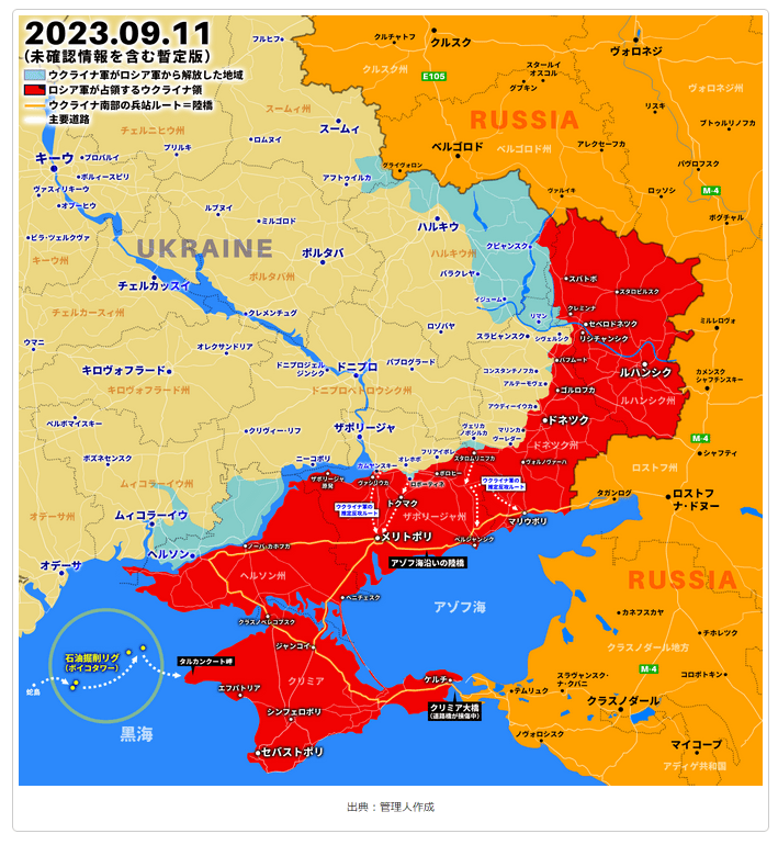ウクライナ軍の突出部(ザポリージャ方面)、逆八になってますからね。 ウクライナ軍前線部隊や補給路も、四方から狙われやすくなっていると思います(ロシア軍の補給路もですが)