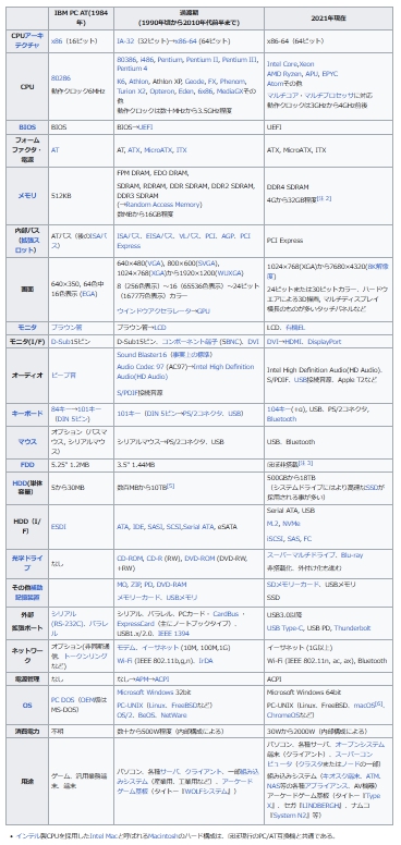 また、ある機種から次の機種への更新の際に、それが高速化や記憶容量の増大である場合もあれば、同じ能力でコストや大きさが小さくなったという場合もある(両方という場合もある)。