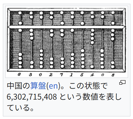 中国の算盤(en)。この状態で 6,302,715,408 という数値を表している。