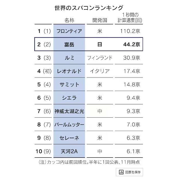 富岳は現在、日本の神戸にある理化学研究所計算科学研究センター (R-CCS) に 2 番目のシステムが設置されています。7,630,848 個のコアがあり、442 Pflop/s の HPL ベンチマーク スコアを達成できました。