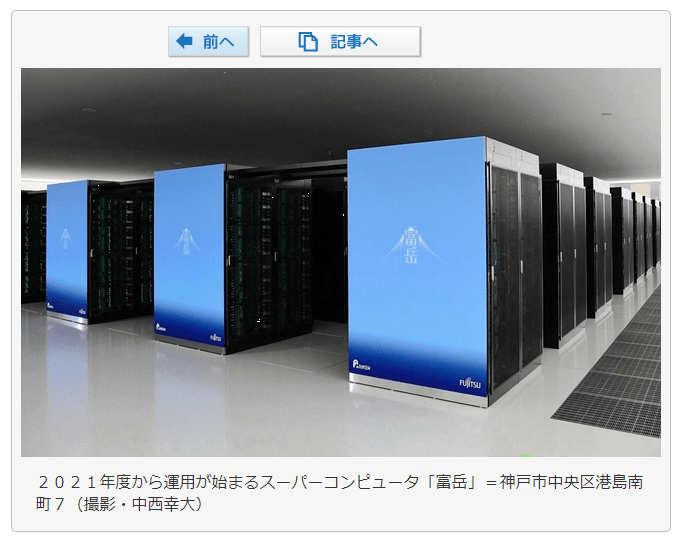 理化学研究所計算科学研究センター(神戸市中央区)に設置された富岳は、理研と富士通が14年度から共同で開発し、20年にスパコン性能ランキングの4部門で2期連続の世界一となった。