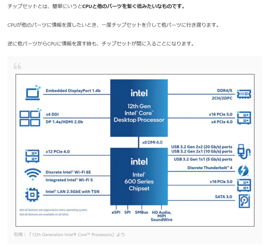 PCI ExpressはGen 5が4レーン、Gen 4が4レーンになる。通常は前者にdGPU(単体GPU)を接続し、後者にストレージ(SSD)を接続することになるだろう。ほかにThunderbolt 4を3ポート持つ。その分のPCI Express Gen 4のポートが少なくとも12レーン分内部的にはあると考えられ、PCT的にはGen 5を4レーン、Gen 4を16レーンというのがスペックであると考えられる。