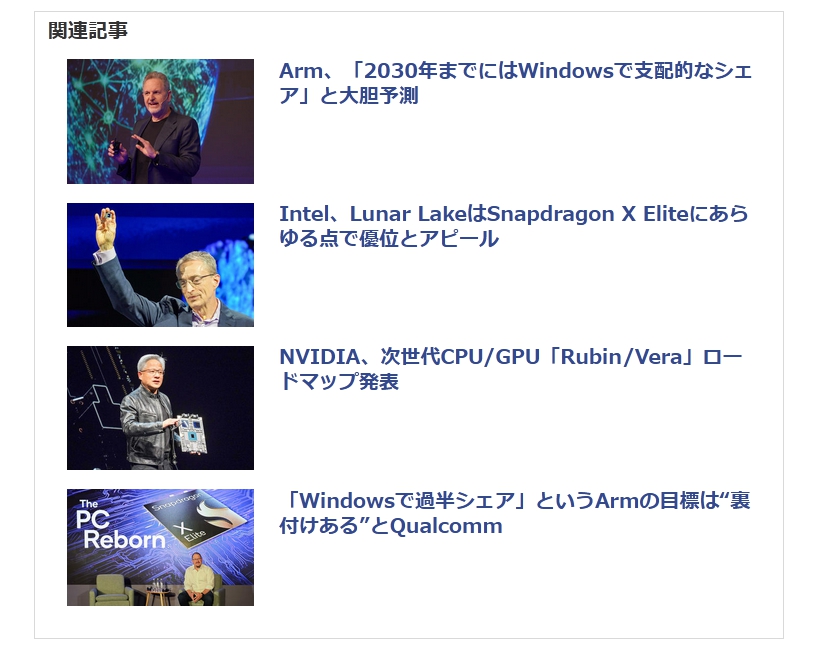 そしてAMDのリサ・スーCEOとIntelのパット・ゲルシンガーCEOは、これからCopilot+ PCをサポートする新しいSoCとなる「Ryzen AI 300」、「Lunar Lake」のアピールを行なった。