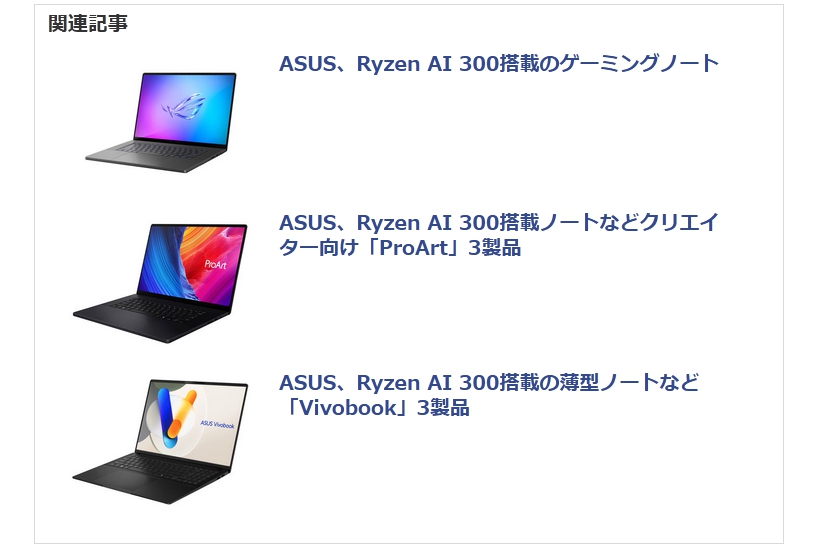 ASUS、Ryzen AI 300搭載の薄型ノートなど「Vivobook」3製品
