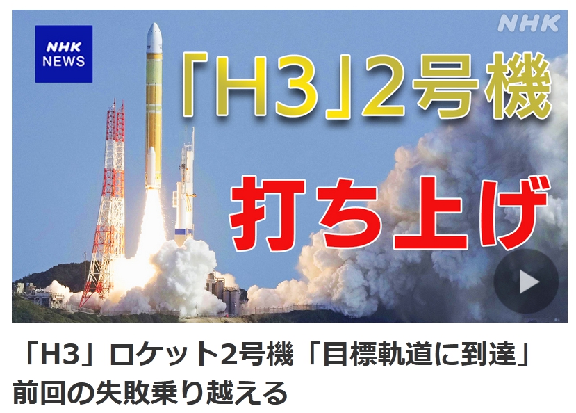 「H3」ロケット2号機「目標軌道に到達」前回の失敗乗り越える