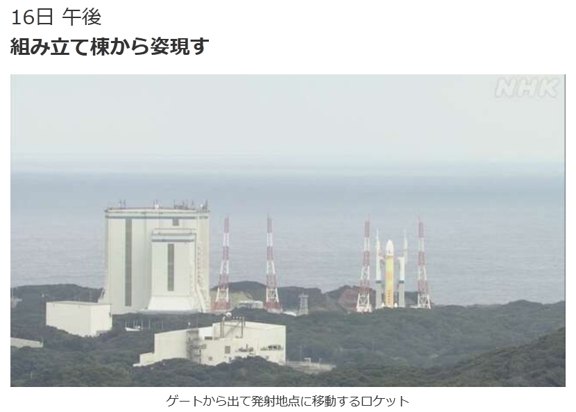 「H3」の2号機は17日午前9時22分に種子島宇宙センターから打ち上げられる予定で、これを前に16日午後3時ごろ、組み立て棟から姿を現し、30分かけて発射地点に移されました。