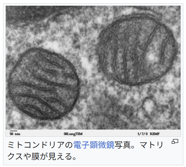 ミトコンドリアの電子顕微鏡写真。マトリクスや膜が見える。