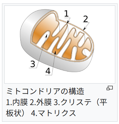 なお、内膜はマトリクスに向かって陥入した、クリステ(cristae)と呼ばれる特徴的な構造を取っている。参考までに、この「cristae」とは「櫛」という意味である[3]。