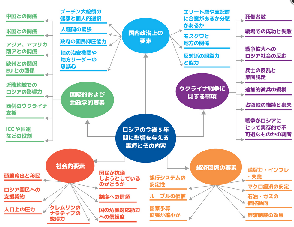 この報告書は今後5年間にロシアに影響を与える要因を項目ごとに整理も試みている。別表はその内容である。』