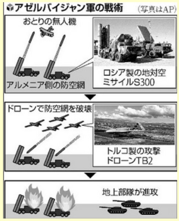 アゼルバイジャンのアリエフ大統領は18日、旧ソ連諸国の独立国家共同体(CIS)オンライン首脳会議で、「戦闘はもはや過去形で語るものになった」と「歴史的勝利」を振り返ったようですが、ドローンを巧みに使用する戦いは今後ますます普及するのでしょう』
