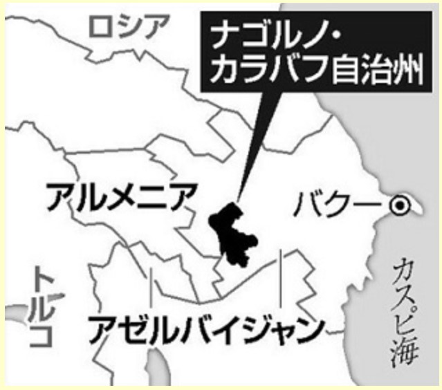 戦いは9月下旬から44日間に及び、双方に6000人近い死者を出した戦闘は11月10日に停戦が発効しましたが、アゼルバイジャンがアルメニア側からナゴルノ・カラバフ自治州の大半を奪還したようです。