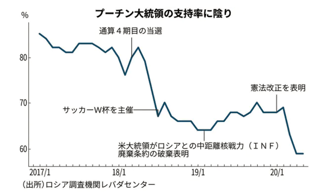 逆にいえば、それが無理なら求心力は低下しかねない。それでなくとも人気の陰りが鮮明になっている。プーチン氏が最も心配するのは、自分というタガが外れたら、ロシアが再び混乱するということだろう。